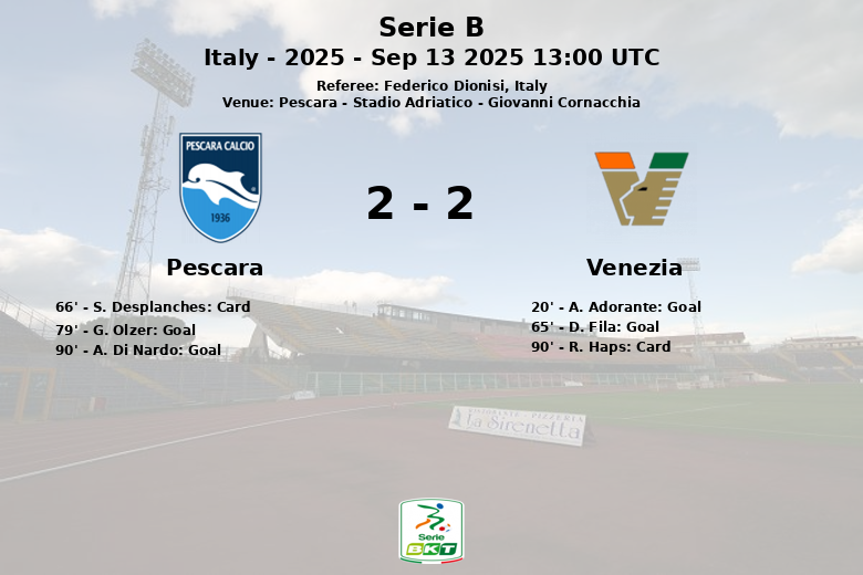 Pescara vs Venezia Sep 13 2025 13:00 UTC
