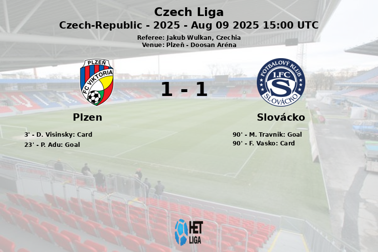 Plzeň, Czech Republic – In a hard-fought match at Doosan Aréna, Plzeň and Slovácko drew in a game corresponding to the fourth matchday of the Czech Liga. The match, refereed by Jakub Wulkan, was marked by intensity and midfield battles.