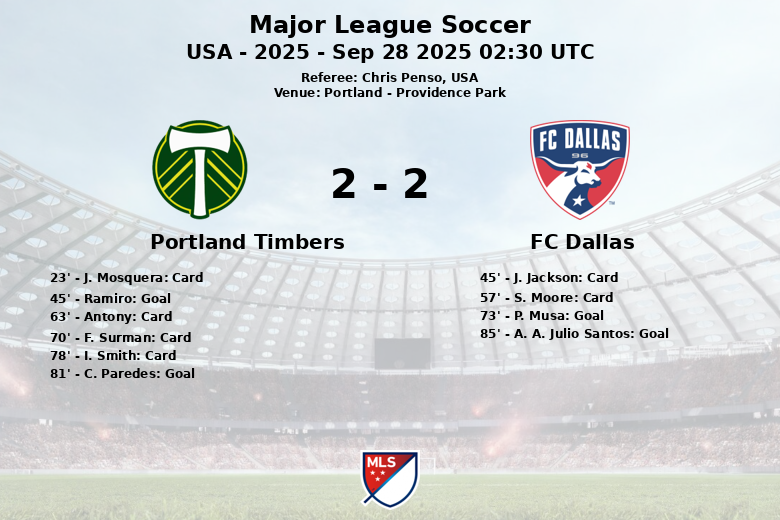 The first half ended with an unfortunate play for Portland, as Ramiro scored an own goal in the 45th minute, giving FC Dallas the lead. The second half was a carousel of emotions. In the 73rd minute, P. Musa extended Dallas’s lead with a penalty. However, the Timbers reacted strongly. C. Paredes scored in the 81st minute with an assist from K. Velde, sparking hope in the home fans.