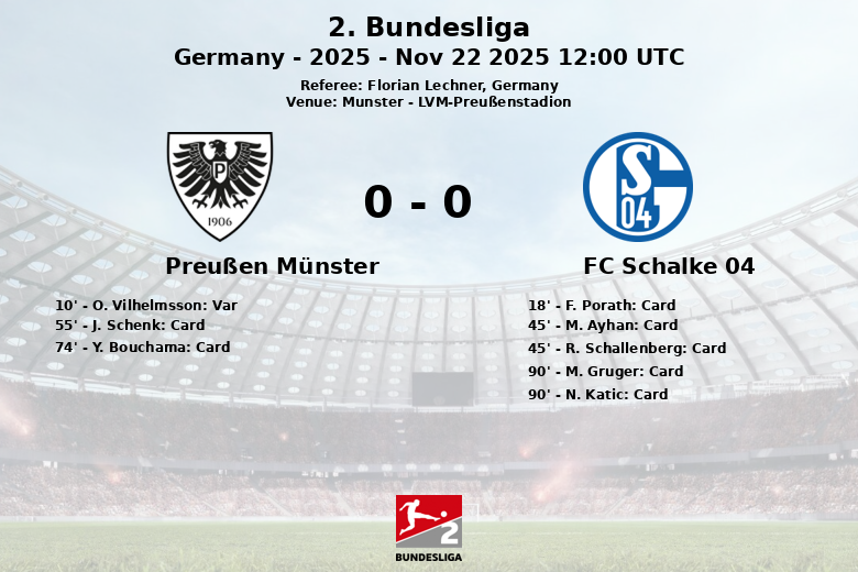 Munster was the setting for a hard-fought match between Preußen Münster and Schalke 04, which ended in a goalless draw. The match, corresponding to matchday 13 of the 2. Bundesliga, was marked by intensity and tactical discipline, although it lacked the scoring spark that fans were hoping for.