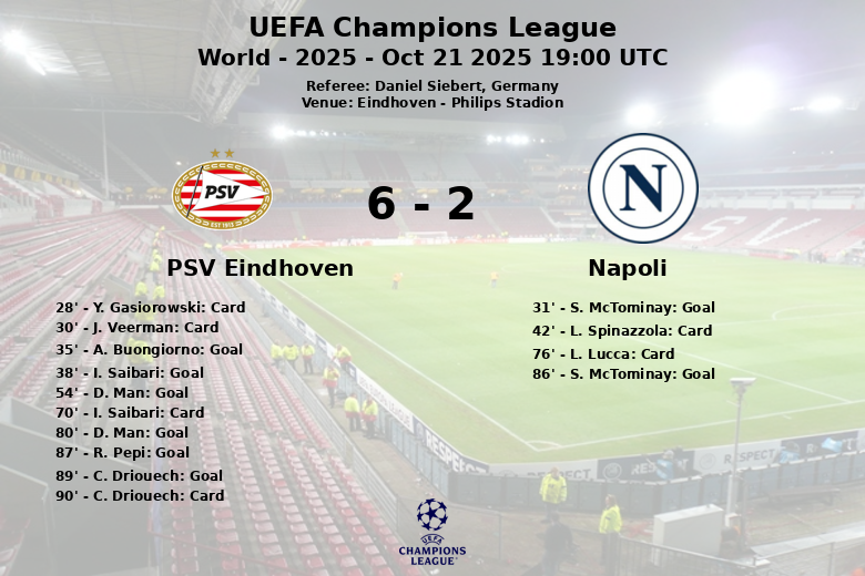 Eindhoven, October 21, 2025 – The Philips Stadion witnessed a thrilling and goal-laden match where PSV Eindhoven defeated Napoli with a resounding score in the third matchday of the UEFA Champions League group stage.