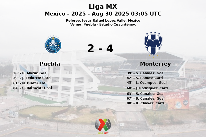 Puebla, Mexico – In a vibrant match held at the Estadio Cuauhtémoc, Monterrey defeated Puebla with a score of 4 to 2 on Matchday 7 of the Liga MX Apertura. The match, played on August 30, 2025, was marked by intensity and a high number of goals.