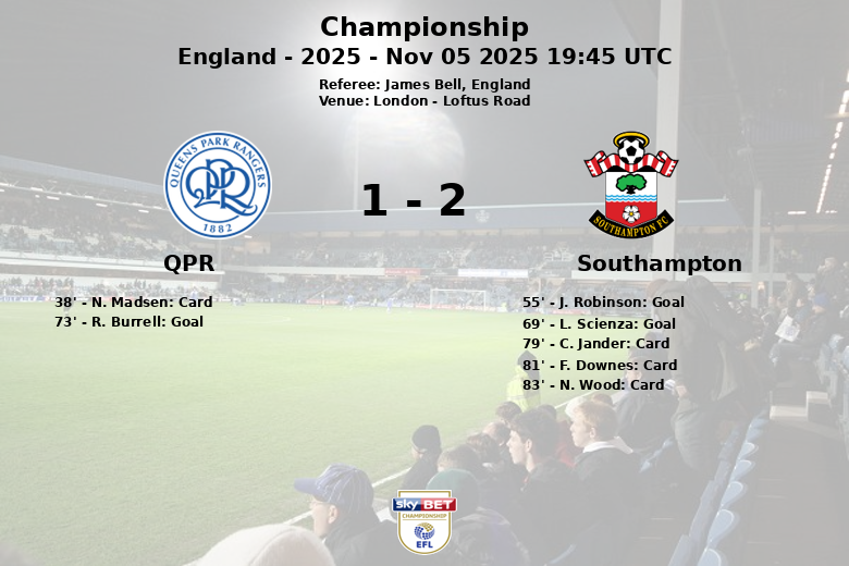 The match was marked by high intensity, reflected in the 14 fouls committed by Southampton and 12 by QPR. Referee James Bell showed a yellow card to N. Madsen of QPR, and to C. Jander, F. Downes, and N. Wood of Southampton. Despite QPR having 11 corners, Southampton successfully defended their lead and took home the three points in a hard-fought match.