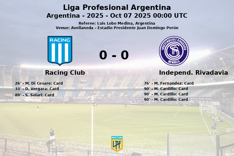 Racing Club vs Independ. Rivadavia Oct 07 2025 00:00 UTC