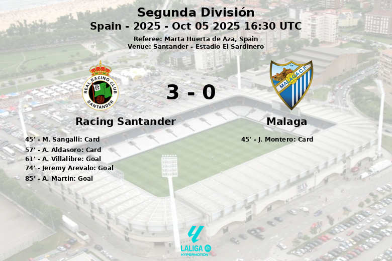 Santander witnessed a resounding victory for Racing Santander over Málaga in the eighth matchday of the Segunda División. The match, played at the Estadio El Sardinero, ended with a scoreline favoring the home team.