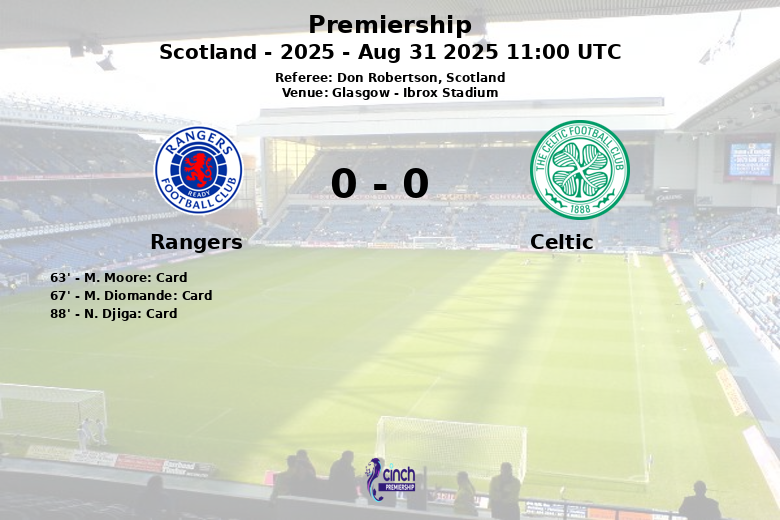 Both teams committed a high number of fouls, tallying 17 each. Referee Don Robertson had to show yellow cards to three Rangers players: M. Moore, M. Diomande, and N. Djiga. No Celtic player was cautioned.