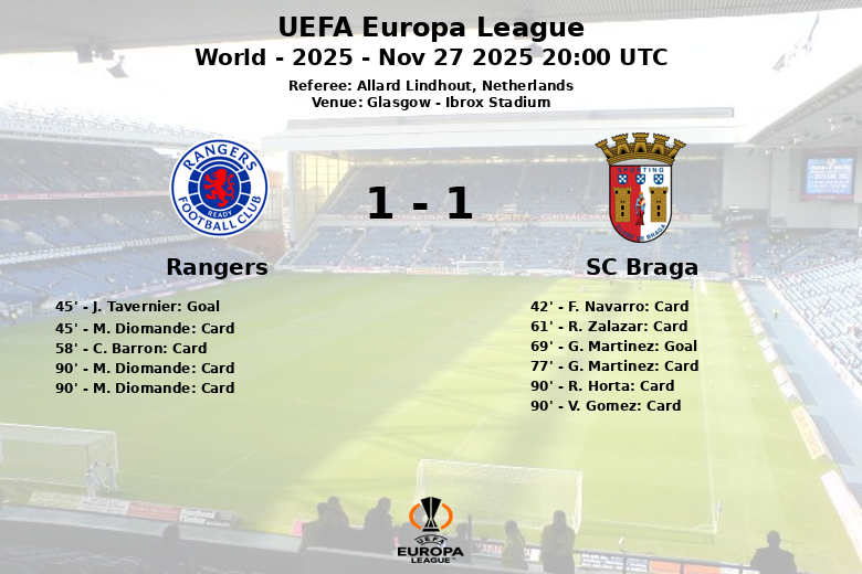 Glasgow witnessed a vibrant and incident-packed match between Rangers and SC Braga, which ended in a 1 to 1 draw on matchday 5 of the UEFA Europa League group stage. The match, played at Ibrox Stadium, was marked by intensity and questionable discipline from both teams.