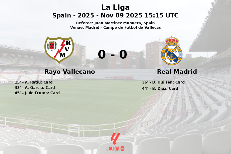 Madrid, Spain – A match filled with tension and marked by yellow cards ended in a 0-0 draw between Rayo Vallecano and Real Madrid at the Campo de Futbol de Vallecas. The match, corresponding to matchday 12 of La Liga, was played under the watchful eye of referee Juan Martinez Munuera.