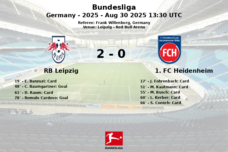 Home Matches RB Leipzig vs 1. FC Heidenheim Aug 30 2025 13:30 UTC