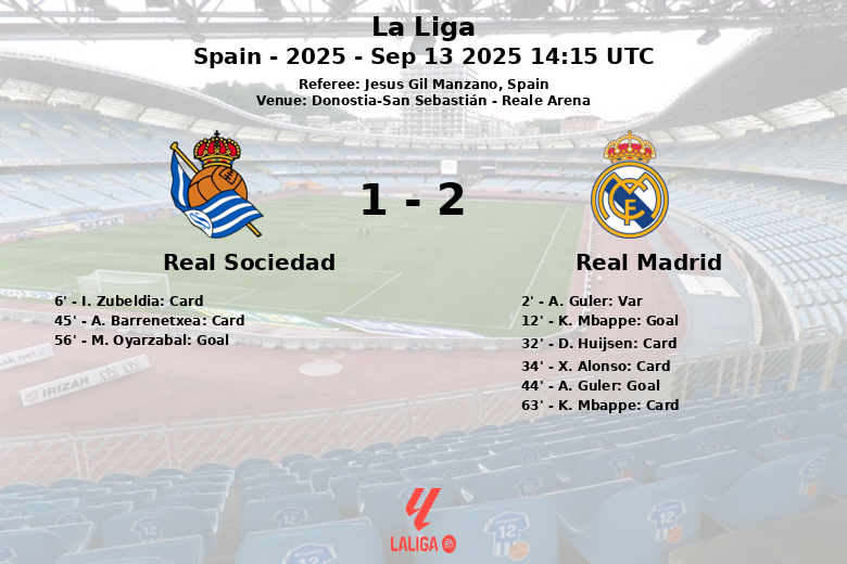 Real Sociedad vs Real Madrid Sep 13 2025 14:15 UTC