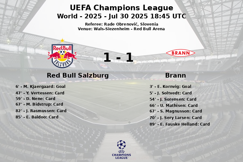 Wals-Siezenheim, Austria – The Red Bull Arena hosted a hard-fought match between Red Bull Salzburg and Brann in the second qualifying round of the UEFA Champions League. The game, played on July 30, 2025, ended in a 1-1 draw, leaving the tie wide open for the return leg.