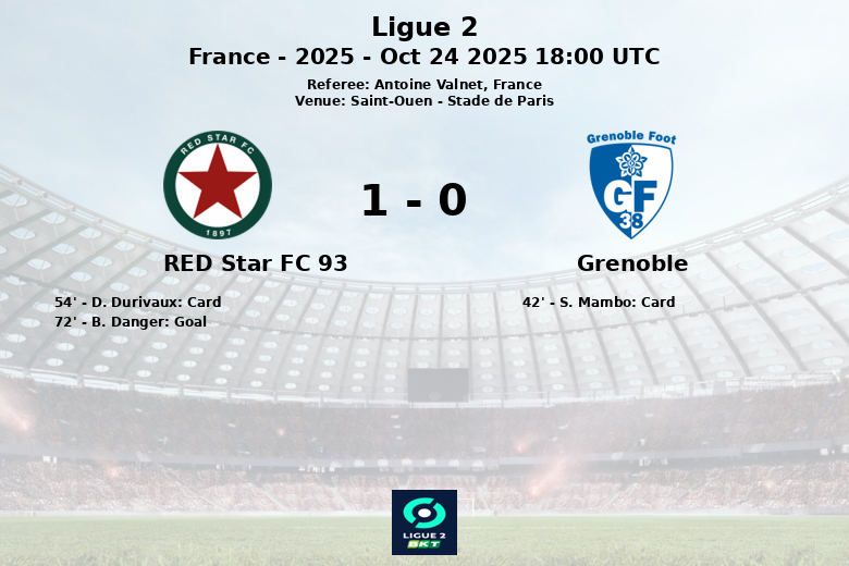 Saint-Ouen, France – In a match corresponding to matchday 11 of Ligue 2, Red Star FC 93 defeated Grenoble at the Stade de Paris. The match, played on October 24, 2025, was marked by intensity and midfield battles.