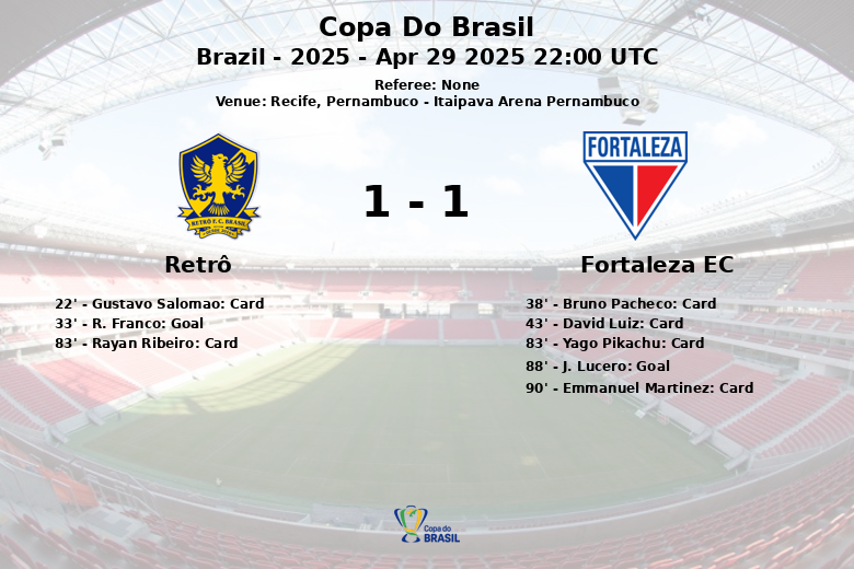 Recife, Pernambuco witnessed a thrilling Copa do Brasil 2025 third-round match between Retrô and Fortaleza EC last night. Played at the Itaipava Arena Pernambuco, Fortaleza EC emerged victorious with a 2-1 win.