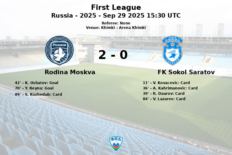 Khimki, Russia – Rodina Moskva triumphed over FK Sokol Saratov in a match held at the Arena Khimki, as part of the 12th round of the First League. The game, played on September 29, 2025, was characterized by its physical play, evidenced by the numerous yellow cards issued by the referee.
