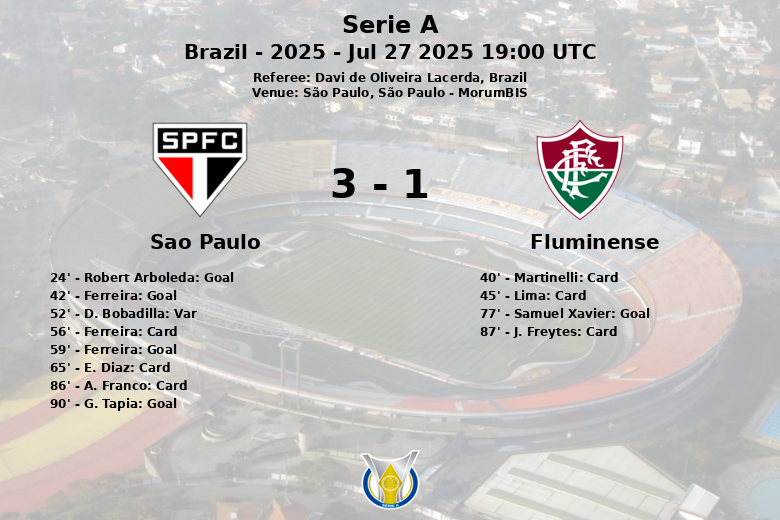 In the second half, Ferreira extended São Paulo’s lead in the 59th minute, with an assist from Marcos Antonio. Although a goal by Bobadilla was disallowed by VAR due to a handball, São Paulo’s dominance was evident. Fluminense pulled one back in the 77th minute with a goal from Samuel Xavier, but the hope was short-lived. Towards the end of the match, G. Tapia sealed the victory for São Paulo in the 90th minute, after a pass from N. Ferraresi.