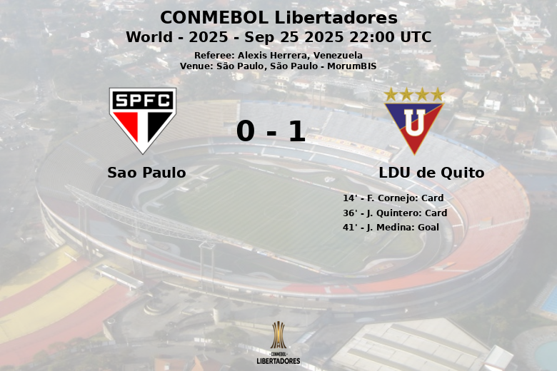 The match was characterized by intensity in midfield, reflected in the 14 fouls committed by LDU Quito and the two yellow cards shown to F. Cornejo and J. Quintero. Sao Paulo, for its part, committed 7 fouls and received one yellow card. Despite the 16 corner kicks in favor of the home team, they failed to capitalize on their numerical advantage in the area. The minimal difference on the scoreboard leaves the series open for the return leg. The match was refereed by Alexis Herrera (Venezuela).