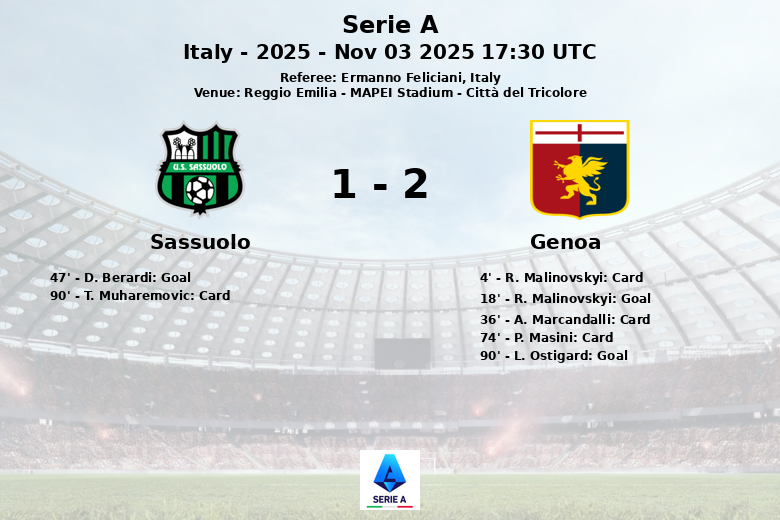 Sassuolo vs Genoa Nov 03 2025 17:30 UTC