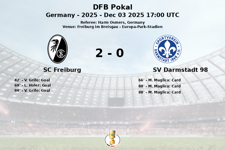 Freiburg, Germany – In a match held at the Europa-Park-Stadion, SC Freiburg prevailed over SV Darmstadt 98 in the DFB Pokal Round of 16. The encounter, played on December 3, 2025, was marked by intensity and key moments.