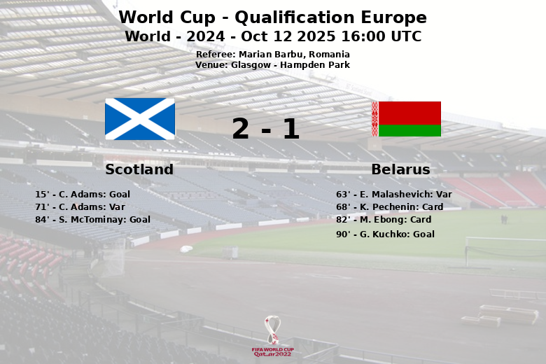 Glasgow, Hampden Park – Scotland secured a hard-fought victory against Belarus in a World Cup qualifying match. The match, refereed by Romanian Marian Barbu, was characterized by an intense pace and several controversial decisions.