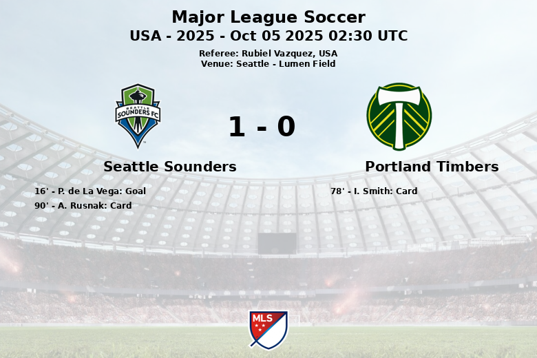 Seattle, USA – In a thrilling encounter held at Lumen Field, the Seattle Sounders managed to overcome the Portland Timbers in a match that kept fans on the edge of their seats until the last minute. The only goal of the match came early, in the 16th minute, thanks to a precise strike by P. de La Vega.