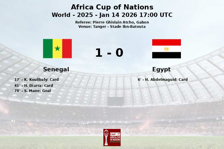 Tangier, Morocco – In a tense and intense match, Senegal managed to defeat Egypt 1 to 0 in the semi-finals of the Africa Cup of Nations, held at the Stade Ibn-Batouta. The match, refereed by Pierre Ghislain Atcho from Gabon, was characterized by Senegal’s dominant possession (65%) and a physical game from both teams.