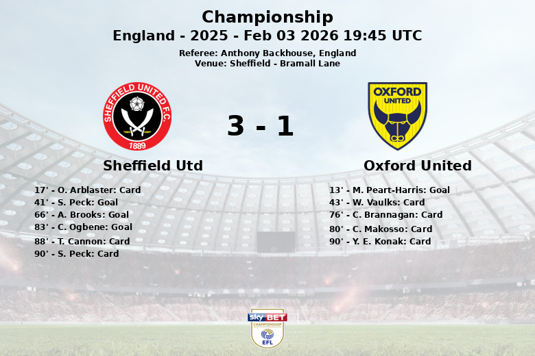 Sheffield, England – In a match corresponding to matchday 26 of the Championship, Sheffield United defeated Oxford United with a score of 3 to 1 at their stadium, Bramall Lane.