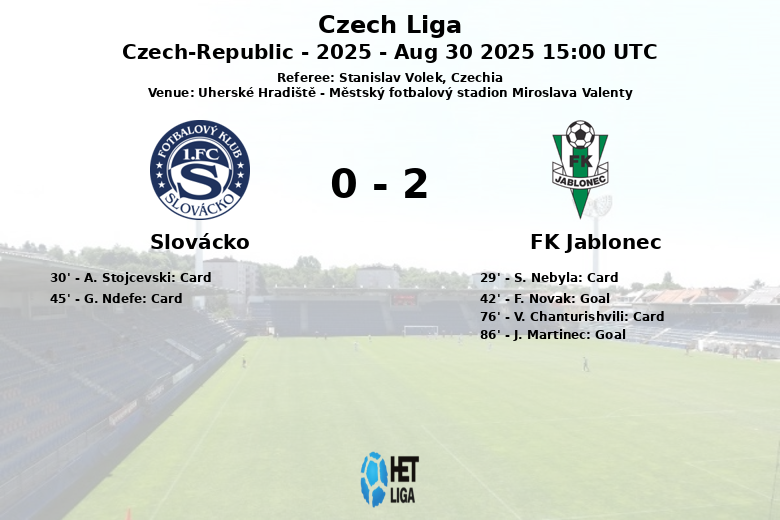 Slovácko vs FK Jablonec Aug 30 2025 15:00 UTC