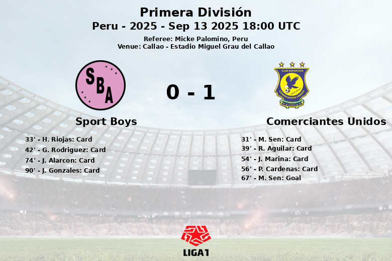 Callao, Peru – In a match filled with tension and cards, Comerciantes Unidos secured a valuable away victory against Sport Boys at the Estadio Miguel Grau del Callao, as part of the eighth round of the Apertura of the Peruvian First Division. The only goal of the match, scored by M. Sen in the 67th minute, was enough to seal the win.