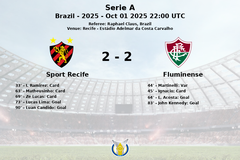 The second half was a whirlwind of emotions. Fluminense opened the scoring with a goal by L. Acosta, assisted by K. Serna. Sport Recife responded with a goal from Lucas Lima, assisted by Hyoran, leveling the score. When it seemed that the game was heading towards a draw, John Kennedy converted a penalty for Fluminense, putting his team ahead again. But the excitement didn’t end there. In the final minutes, Luan Candido, assisted by Lucas Lima, sealed the final draw for Sport Recife, rescuing a valuable point at home.