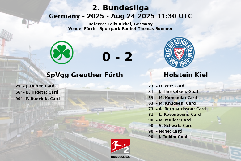 SpVgg Greuther Fürth vs Holstein Kiel Aug 24 2025 11:30 UTC