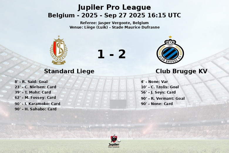 Club Brugge KV Secures Victory in Thrilling Match Against Standard Liege