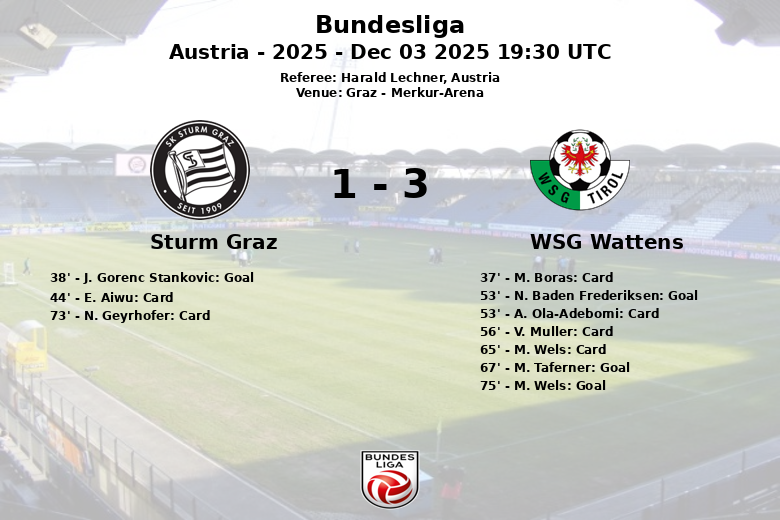 Sturm Graz Suffers Shock Home Defeat to WSG Wattens