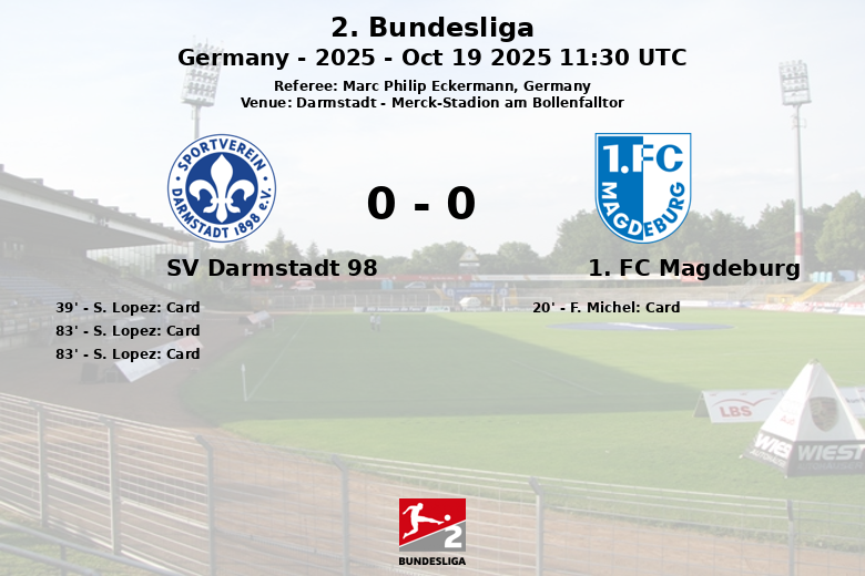 The match was characterized by intensity in the midfield, reflected in the number of fouls committed by both teams, 15 each. The first warning came early, in the 20th minute, with a yellow card for F. Michel of Magdeburg. Darmstadt responded with a yellow card for S. Lopez in the 39th minute.