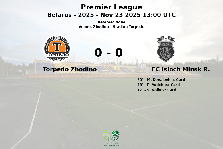 Despite opportunities created by both sides, neither team could break the deadlock on the scoreboard. FC Isloch Minsk R. received three yellow cards throughout the match, showcasing the intensity of their defensive play. Torpedo Zhodino, on the other hand, maintained discipline without receiving any bookings. Although possession, shots on target and offside statistics were not provided, it’s evident that the match was a tactical battle where order prevailed over attacking brilliance. The lack of goals does not reflect the commitment of the players on the field, who battled tirelessly until the final whistle.