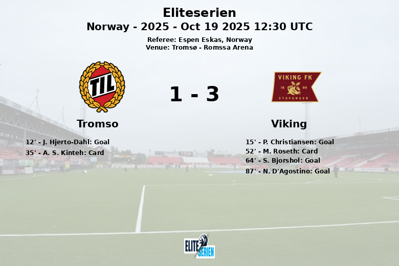 Despite having more shots on target (4) than Viking (3), Tromsø failed to convert their opportunities. Viking, on the other hand, made the most of their chances and took all three points home. Referee Espen Eskas officiated the match without major incidents.