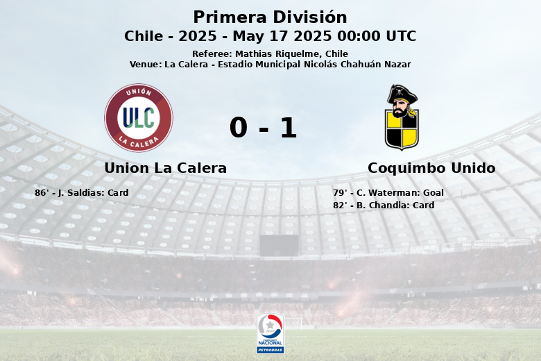 Coquimbo Unido defeated Unión La Calera 1-0 at the Estadio Municipal Nicolás Chahuán Nazar in La Calera in a match corresponding to round 11 of the 2025 Chilean Primera División. The match, played on May 17th, 2025, saw Unión La Calera dominate possession (62%), registering 11 shots (2 on target, 4 off target), but ultimately failing to convert their chances.