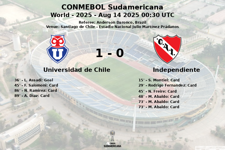 Santiago de Chile hosted a vibrant and hard-fought match between Universidad de Chile and Independiente, valid for the Round of 16 of the CONMEBOL Sudamericana. The match, played at the Estadio Nacional Julio Martínez Prádanos, ended with a victory for the home team.