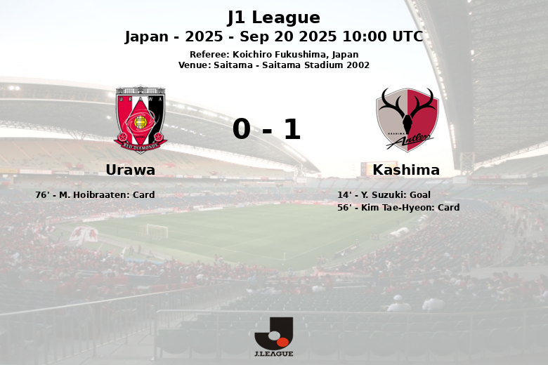 Saitama, Japan – Kashima Antlers secured a valuable away victory against Urawa Red Diamonds in a match played at the Saitama Stadium 2002. The only goal of the match came early on, in the 14th minute, thanks to Y. Suzuki, who capitalized on an opportunity to send the ball into the back of the net.