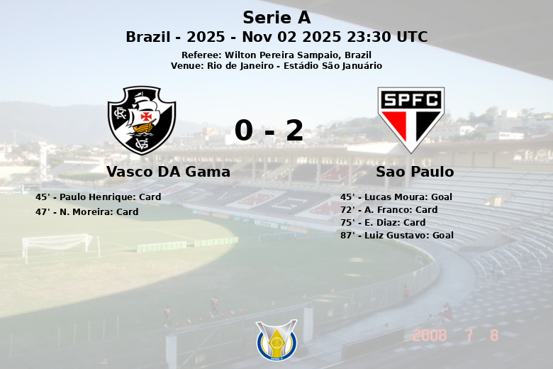 Lucas Moura opened the scoring for Sao Paulo in the 45th minute via a penalty. Vasco da Gama, despite their 25 shot attempts, only managed to direct 8 of them on target, revealing a lack of precision in the final third of the field. Sao Paulo’s defense proved solid, frustrating the home team’s attacking attempts.