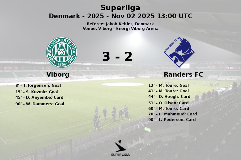 Viborg, Denmark – In a hard-fought match at Energi Viborg Arena, Viborg and Randers FC played to a draw in a game that kept fans on the edge of their seats until the final whistle. The match, valid for Round 14 of the Danish Superliga, ended with a score of Viborg 2 – Randers FC 3.
