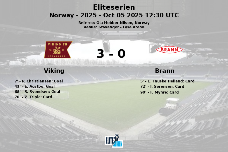 Stavanger, Norway – In a match played at Lyse Arena, Viking displayed ruthless efficiency against Brann, securing a dominant victory. Despite having only 33% possession, Viking made the most of their attacking opportunities. P. Christiansen opened the scoring early in the 7th minute, followed by E. Austbo before halftime in the 43rd minute. In the second half, S. Svendsen sealed the win with a third goal in the 68th minute.