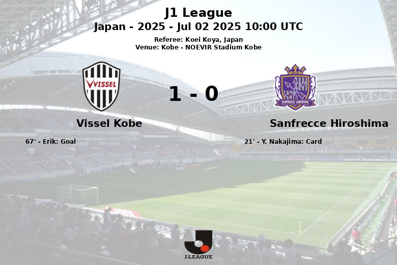 While Sanfrecce Hiroshima maintained a possession level close to that of Vissel Kobe (48% against 52%), it was the home team who managed to convert one of their opportunities. Erik, assisted by D. Sasaki, scored the only goal of the match in the 67th minute, tilting the balance in favor of Vissel Kobe.