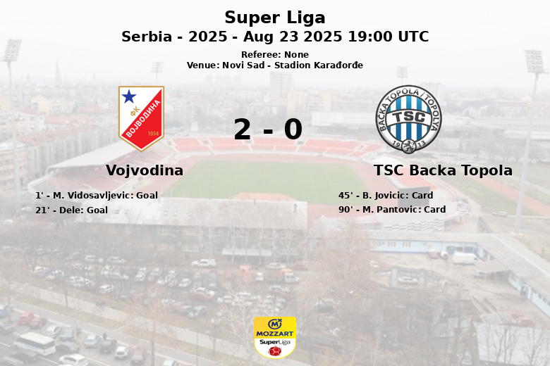 Vojvodina displayed their home dominance by defeating TSC Backa Topola in a match held at the Stadion Karađorđe in Novi Sad. The game, part of the sixth round of the Serbian Super Liga, concluded with a result favoring the home side.