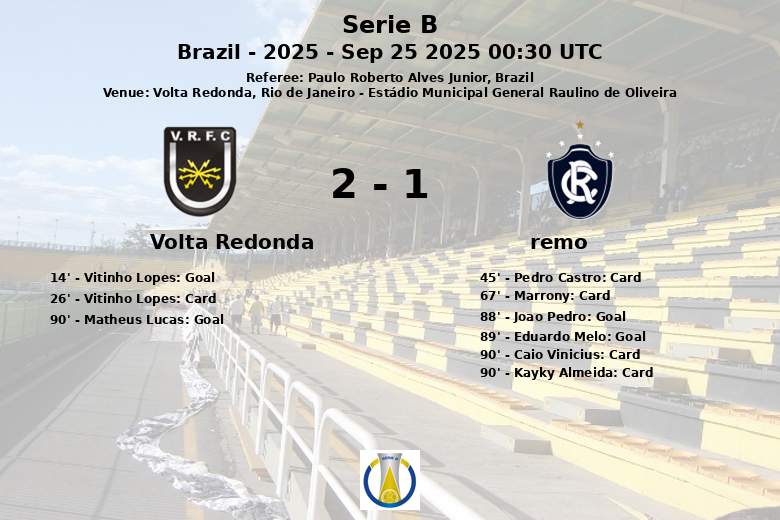 Remo, although with less possession (46%), constantly sought the rival goal, registering nine shots, three of them on target. The match intensified in the final minutes. In the 88th minute, Joao Pedro missed a penalty that he himself had earned, but Remo did not give up. Eduardo Melo equalized the score in the 89th minute. Just when it seemed that Remo was taking the victory, Matheus Lucas scored for Volta Redonda in the 90th minute, sealing the final draw. The match was refereed by Paulo Roberto Alves Junior. Remo accumulated 4 yellow cards for the 1 of Volta Redonda.
