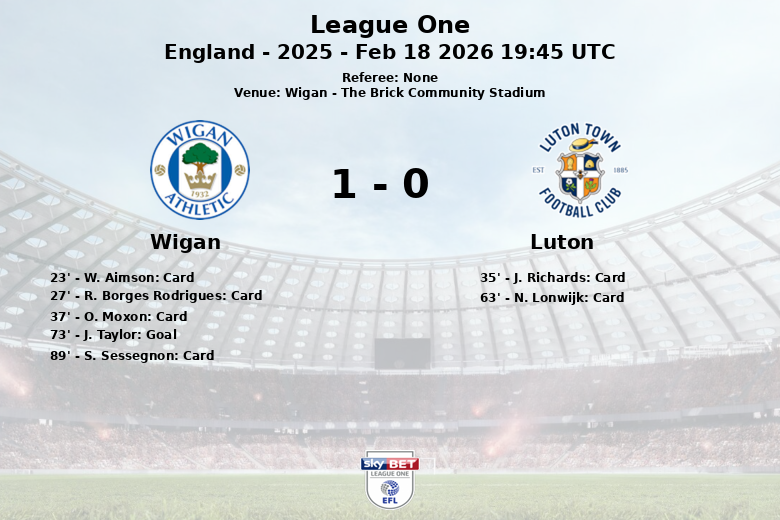 The decisive moment of the match arrived in the 73rd minute when J. Taylor, assisted by D. Costelloe, scored the only goal of the game for Wigan. Despite Luton’s attempts to equalize, the home defense stood firm, allowing only one shot on target out of Luton’s eight attempts. Wigan, on the other hand, managed to direct 5 of their 7 shots on goal. The match ended with a victory for Wigan, who earned three important points in their League One campaign.