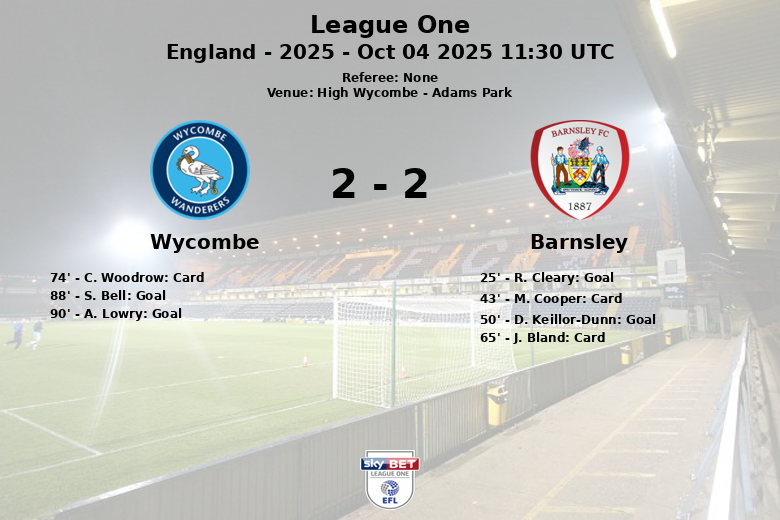 Wycombe vs Barnsley Oct 04 2025 11:30 UTC