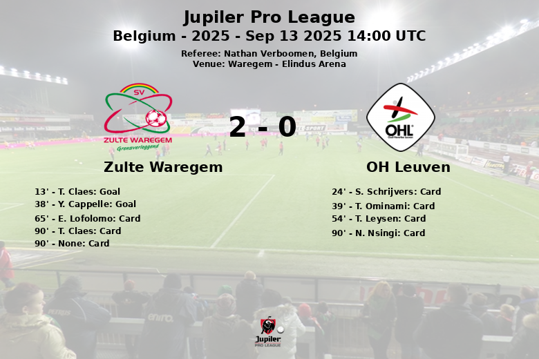 Zulte Waregem vs OH Leuven Sep 13 2025 14:00 UTC