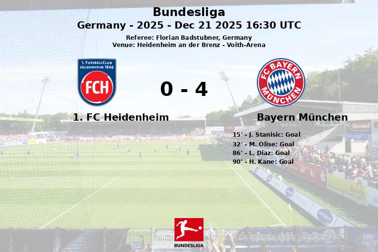 Heidenheim an der Brenz, Alemanha – O Bayern München demonstrou sua superioridade ao vencer o 1. FC Heidenheim em uma partida disputada na Voith-Arena. Desde o apito inicial, o Bayern impôs seu jogo, controlando a posse de bola com 74% e criando inúmeras oportunidades de gol.
