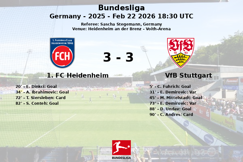 1. FC Heidenheim vs VfB Stuttgart Feb 22 2026 18:30 UTC