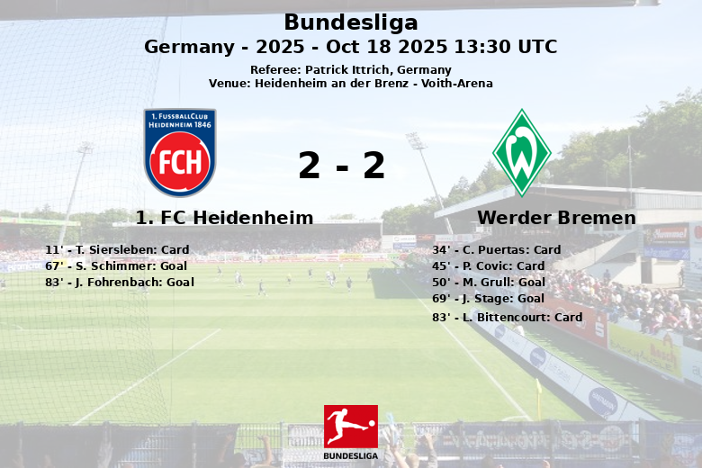 Heidenheim an der Brenz testemunhou um empate vibrante entre o 1. FC Heidenheim e o Werder Bremen, em partida válida pela Bundesliga. O encontro, disputado na Voith-Arena e arbitrado por Patrick Ittrich, terminou com um placar que reflete a intensidade e o esforço de ambas as equipes.